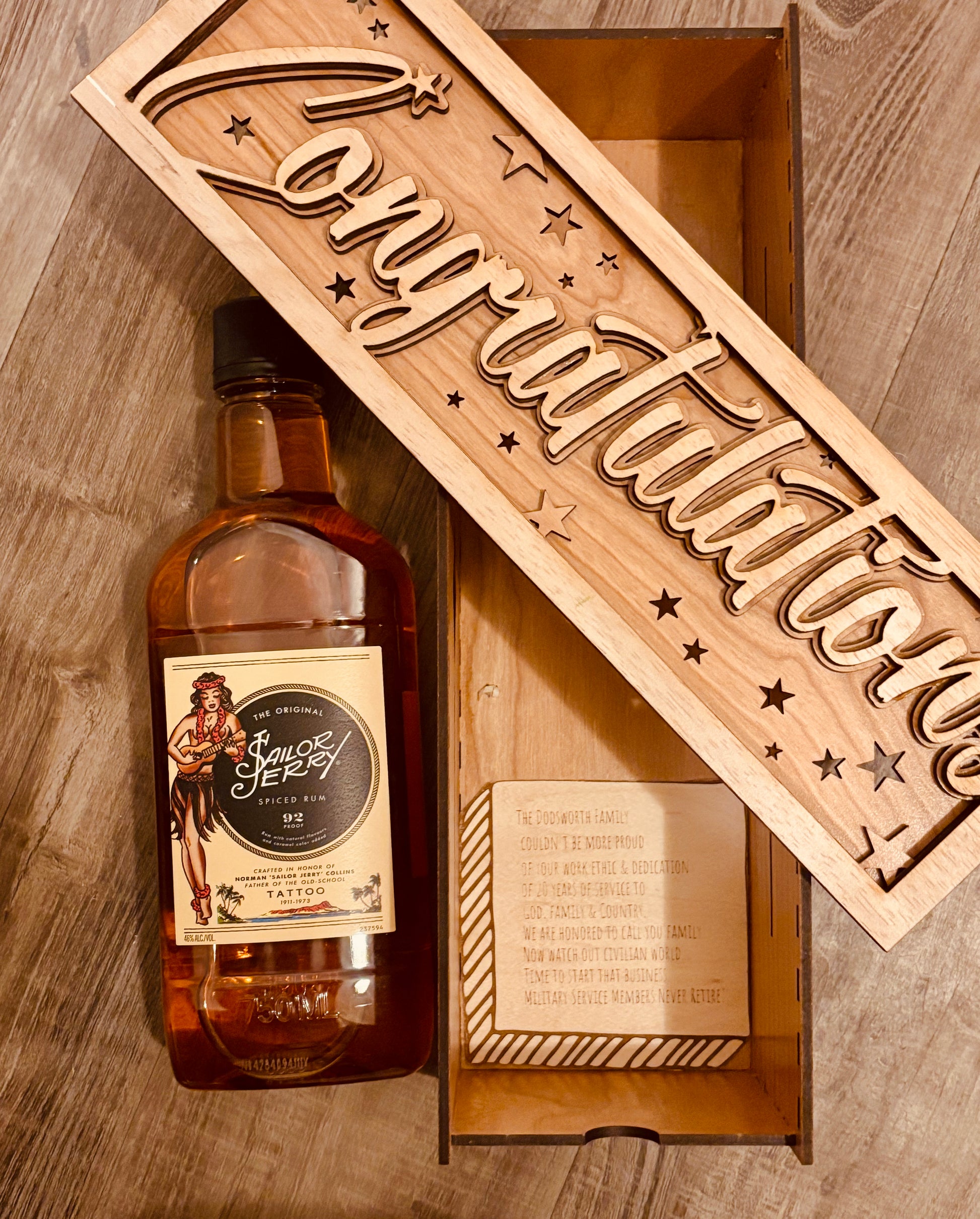 Wedding or Anniversary party, retirement or farewell, we got you covered with these custom inspired boxes that will suit any occasion. Wine bags are boring! Give something that will last long after the drink is gone. These commemorative boxes are the gift that keeps on giving and makes memories again and again! Send us a message on our contact us page with your occasion you're celebrating and we will bring your vision to life. All boxes start at $45 for basic custom details for name engraving and wedding date. More intricate details range from $85 to $150 depending on woodwork designs and bottle size for larger boxes.