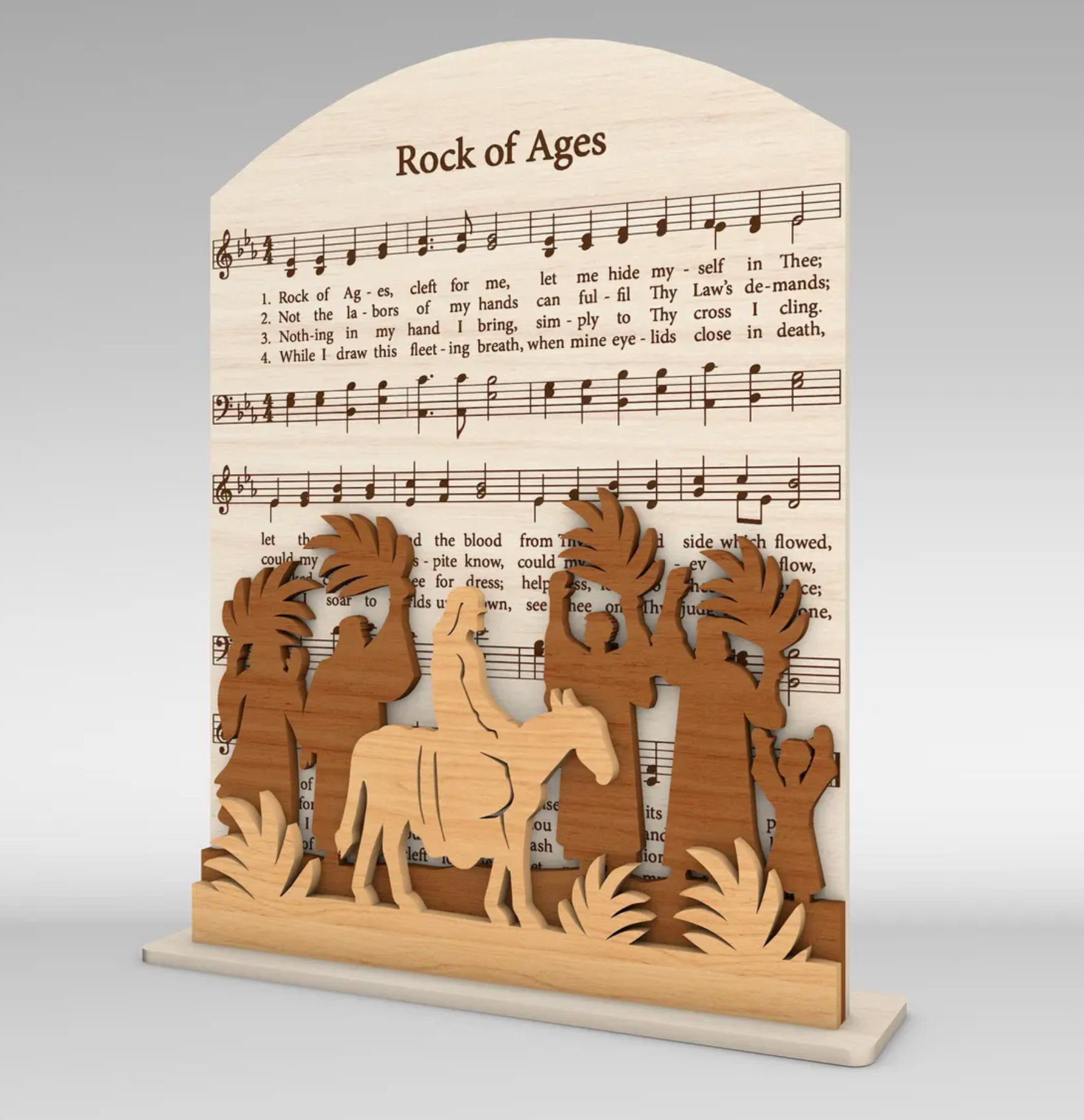 These beautifully designed Easter Triptychs have musical notes carefully carved in each scene with an Easter silhouette to match below. Together these look breathtaking when displayed as a complete set, or mix and match and bless someone during the Easter season with a single scene. These are modeled after our very popular Nativity shelf sitters and matching Christmas ornaments that were a big hit for those that admire the rustic farmhouse look.